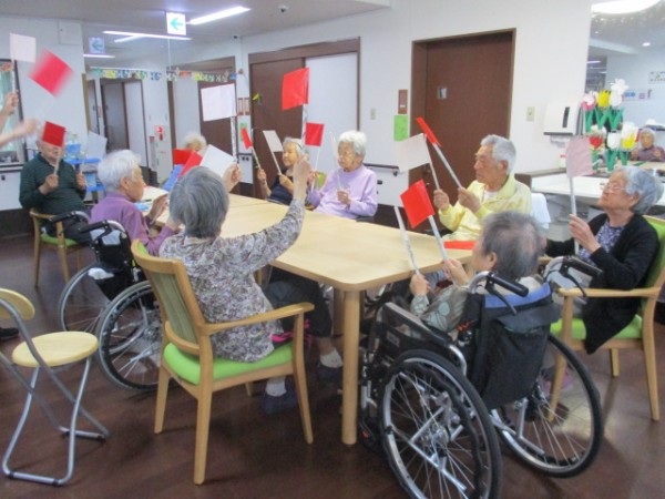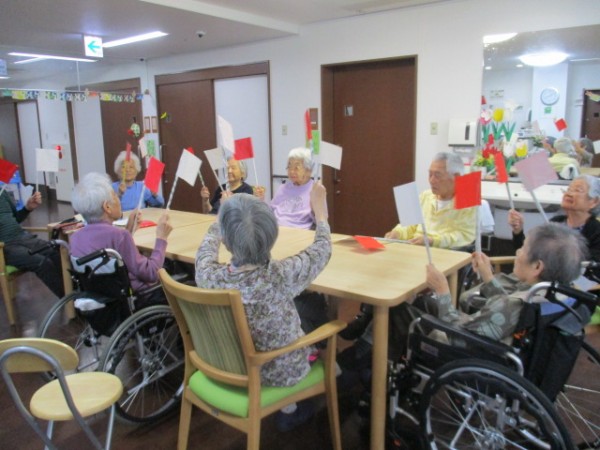 ご入居者様も大きな声を出して