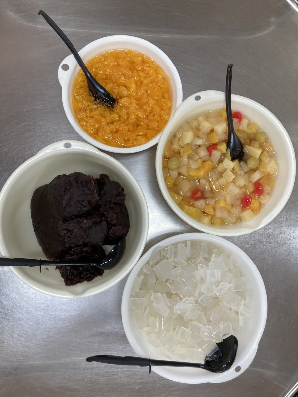 メインとなるあんみつ作りです。材料の方は用意しておりますので、あとは盛り付けとなります