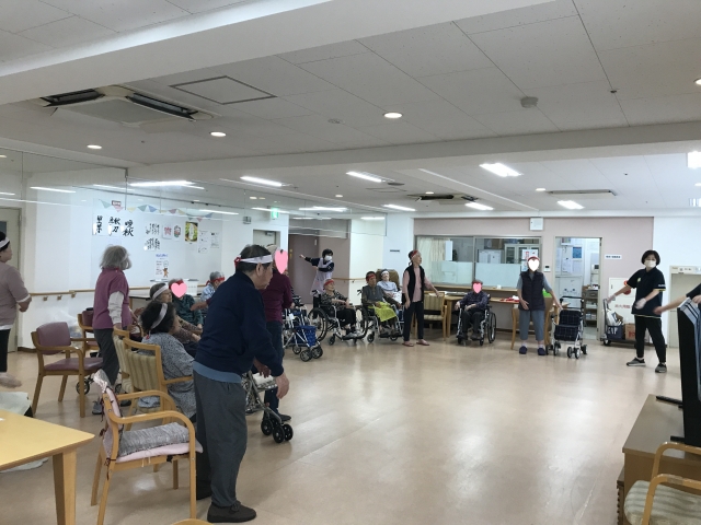 みんな揃ってリモート体操。ググっと筋肉を刺激しましょう