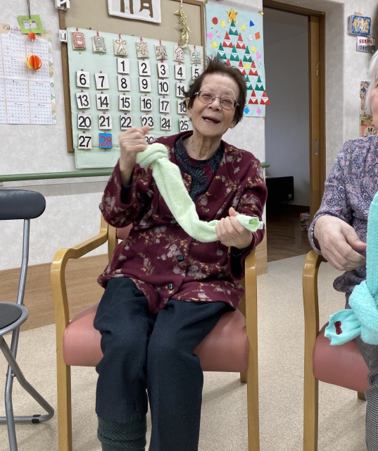 タオルを使って体操です!
