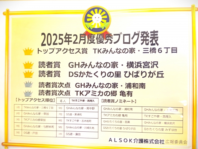 ★☆三橋6丁目のブログが『トップアクセス賞 』表彰‼2月度優秀ブログ発表2025年令和7年✨ 『みんなの家 三橋6丁目 介護ブログ』☆★