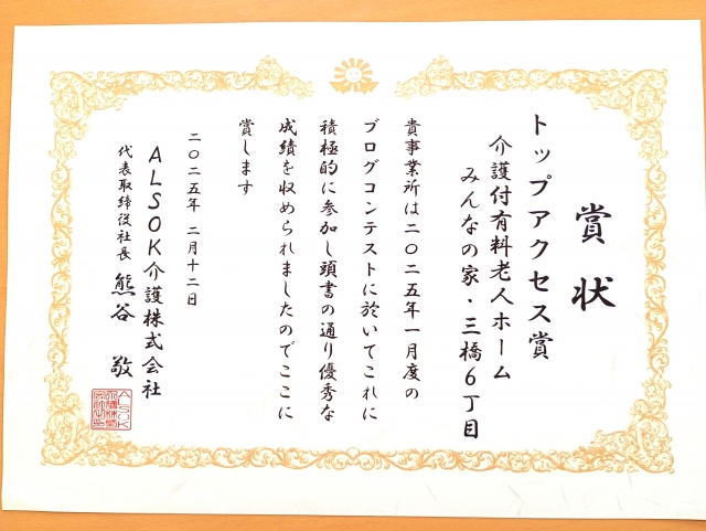 ★☆三橋6丁目がトップアクセス賞で賞状授与♪優秀な成績を収められたのでここに賞します2025年令和7年✨ 『みんなの家 三橋6丁目 介護ブログ』☆★