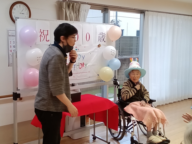 ★☆100歳百寿祝Happy Birthdayハッピーバースデー☆K・K様の誕生日会‼司会鈴木勝也ホーム長‼2025年令和7年✨ 『みんなの家 三橋6丁目 介護ブログ』☆★