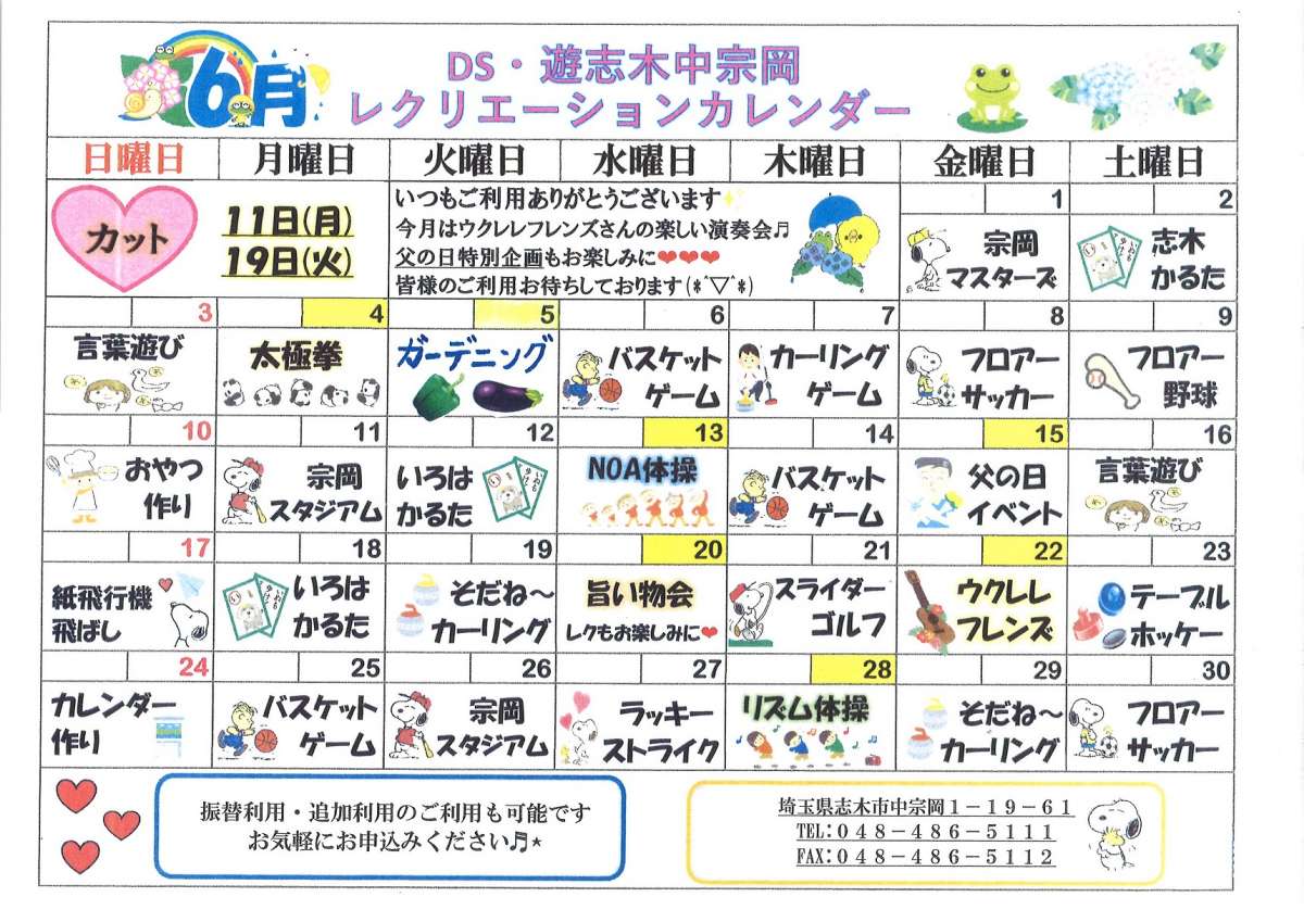☆6月 レクリエーションカレンダー☆