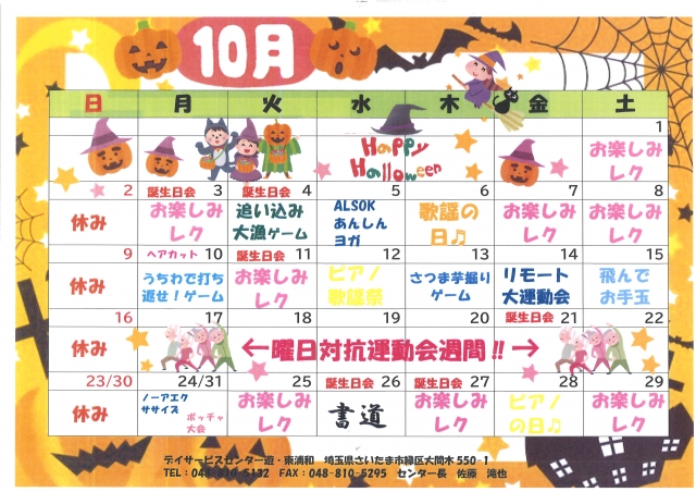 10月のレクリエーションカレンダー☆彡