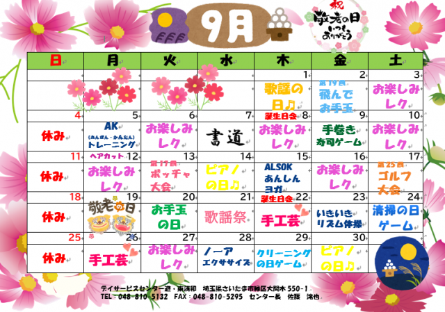 9月のレクリエーションカレンダー☆彡