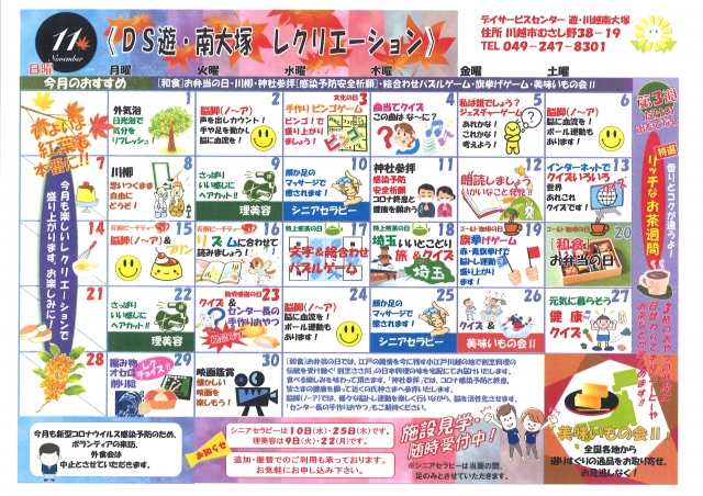11月レクリエーションカレンダー♪