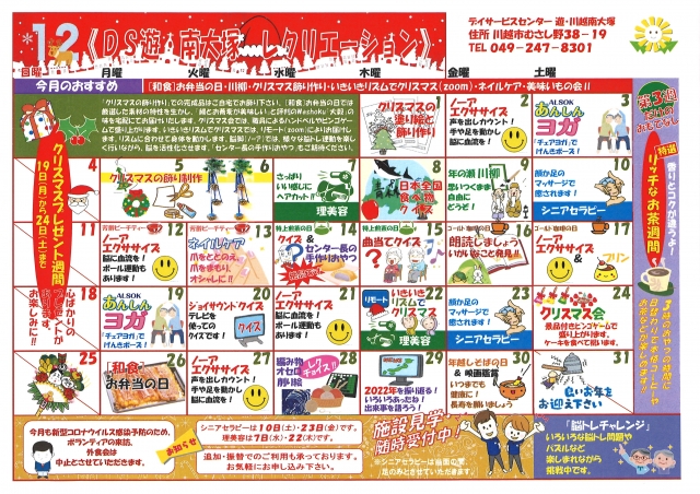 令和4年 12月レクリエーションカレンダー