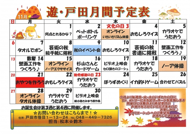11月のレクリエーションカレンダー♡