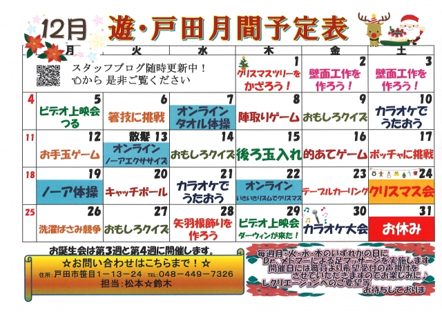 12月レクリエーションカレンダー♡