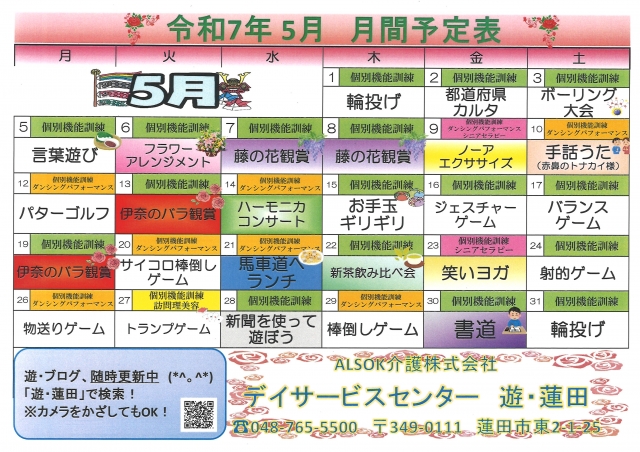 5月レクリエーション表のお知らせ