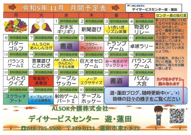11月の予定表になりまーす♪