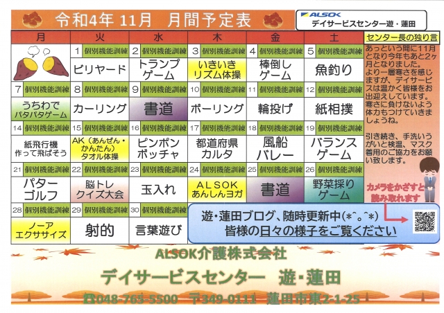 11月の予定表でーす!