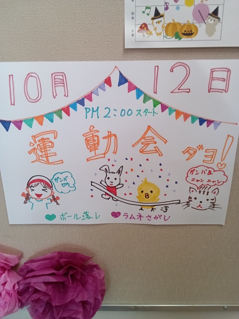 みんなの家松伏の運動会イェ~イ(^^)/赤白帽子‼