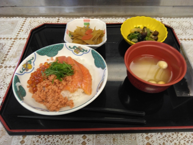 介護付き有料老人ホーム「アミカの郷流山」鮭いくら丼♪