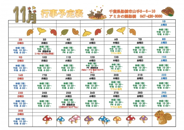11月のイベントカレンダーとご当地メニュー♪
