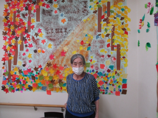 とっても秋らしい壁飾りが完成しました!(^^)!