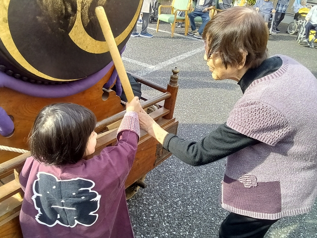 久地神社祭礼~本宮の日、大太鼓巡行ご一行様がグループホームみんなの家にやってきた!~