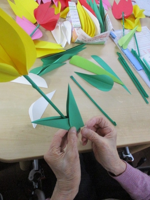 今日のレクは~春を待ちわびて~チューリップ制作をして戴きました~‼️
