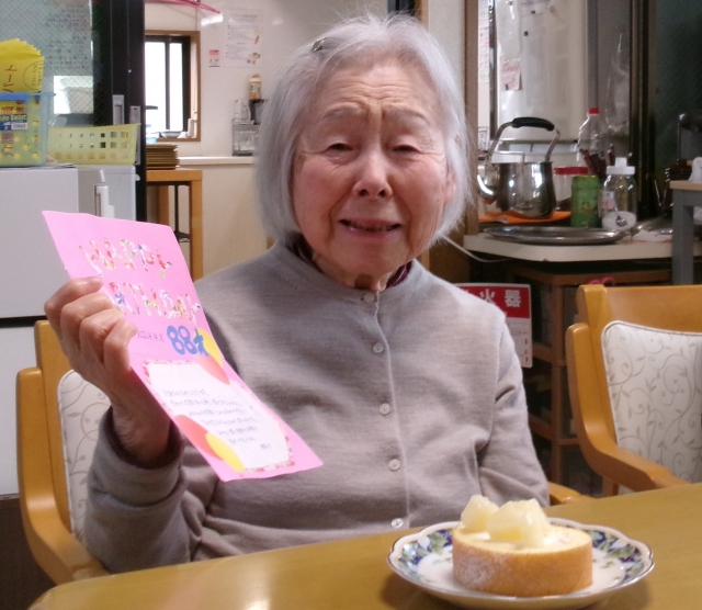 4/8 誕生日会!88歳おめでとうございます!祝ってもらえたのがとても嬉しかったようで何度も涙をこぼしておりました。