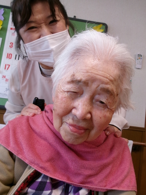 3/13 シニアセラピー癒しの時間~こちらはフロアで行いました。表情が出てみるみる明るい肌になり、ご本人もご満悦(*´艸`*)