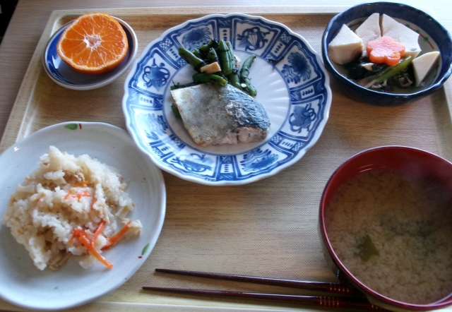 3/10 お昼は春御膳風!昨日のタケノコの煮物に手を加え炊き込みご飯に致しました!(^^)!