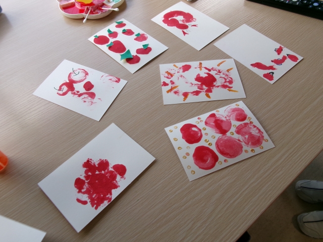 3/10 午後の創作!春の芸術が爆発だ~!置いた色から色んな生き物や果物に大変身!