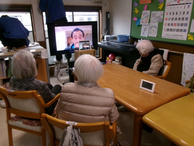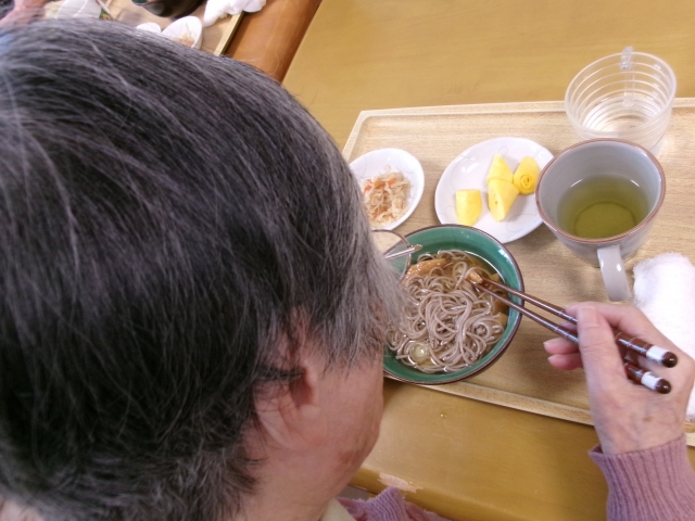 3/11 お掃除が入りまして皆さまで疎開中!お昼ご飯は2か所に分かれたまま提供。おそばですな?温まりますね~!(^^)!