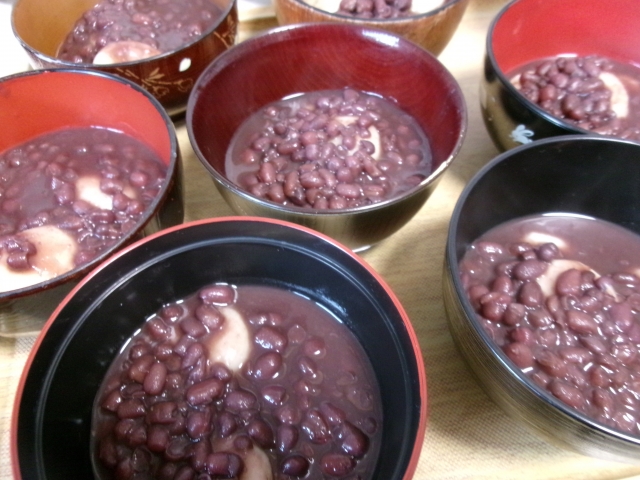 1/11 本日、鏡開き!スタッフが炊いた小豆に豆腐と上新粉のお餅でお汁粉完成~(*´艸`*)