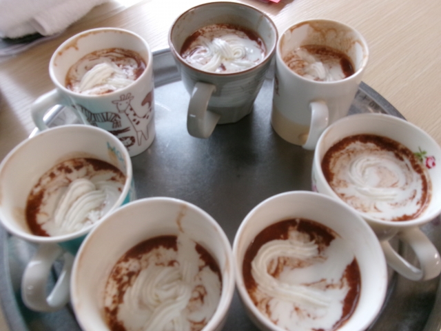 1/2 おやつにホットチョコレート(≧▽≦)温まるぅ~!残りのホイップクリーム入れて豪華~!