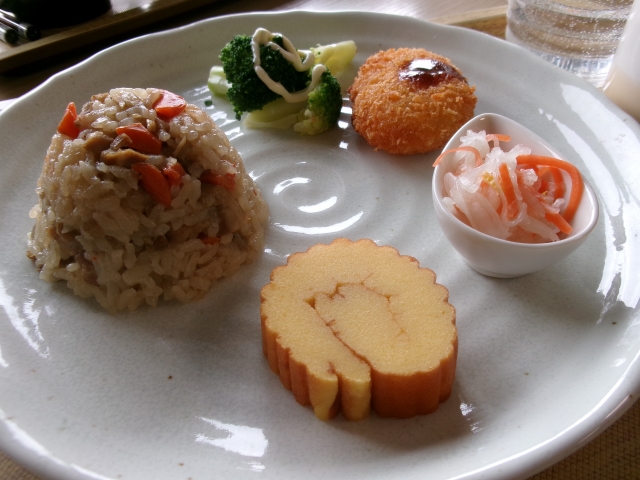 1/3 お昼ご飯!ワンプレート!お煮しめを細かく刻んで炊き込みご飯にしました!まだまだあ正月~(^_-)-☆