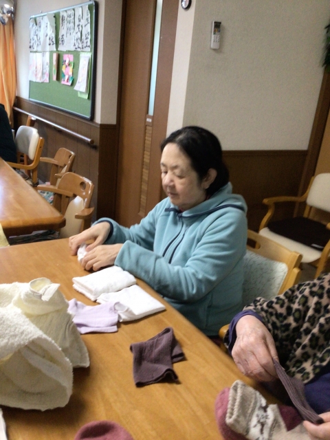 のんびりお手伝い!ビニールたたみ!みんなでやると早いね!