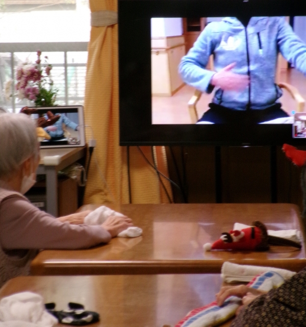 11/15リモート体操 タオル体操開催!1Fかわいいトナカイさんが参加しておりました(∀`*ゞ)エヘヘ