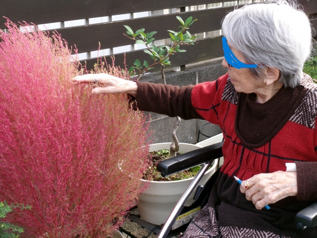お外がやっぱり気持ち良い~!ハイビスカス綺麗だね~!コキアも紅葉してきたね!