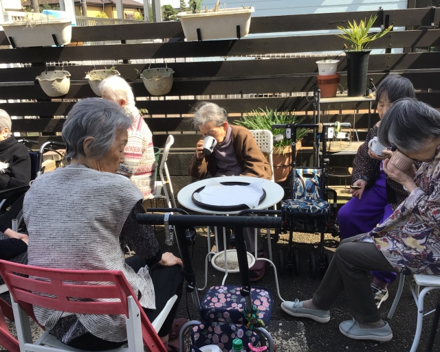 施設前でアフタヌーンティー♪