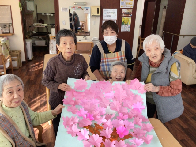 1F本日のレク(桜の壁面づくり)