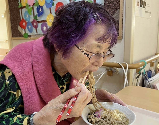 みんなで一緒に冷たいたぬき蕎麦!