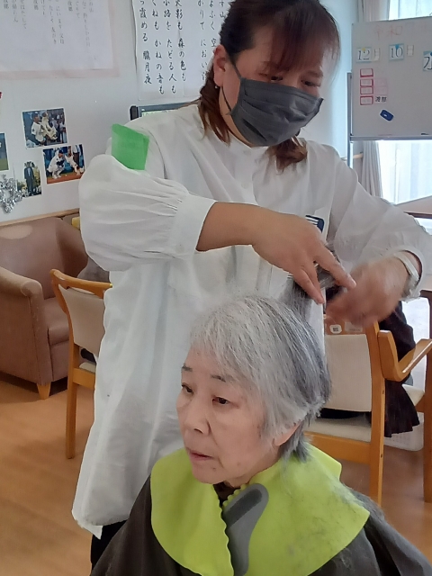 散髪の様子【グループホームみんなの家・横浜市ヶ尾】