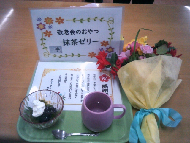 1階・昼食にお赤飯におやつに抹茶ゼリーを作りました☆