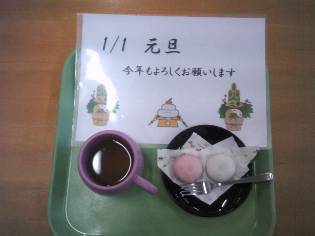 1階・1/1 紅白饅頭のおやつを召し上がりました☆