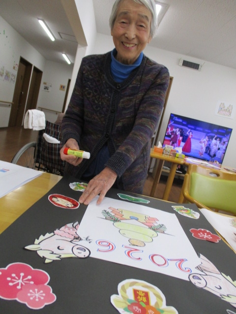 2階・お正月遊び(福笑い)を行っているご様子です☆