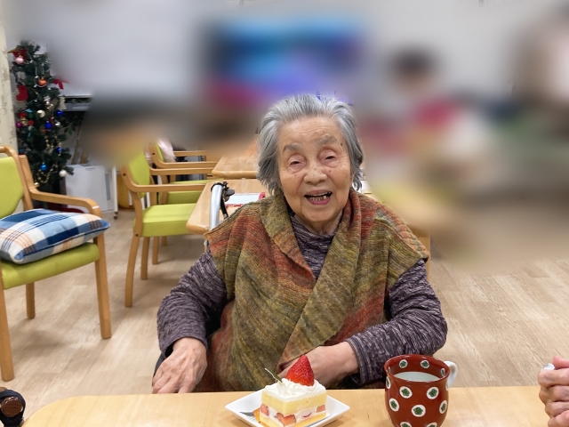 『ご入居者様の皆様でケーキを楽しみました』