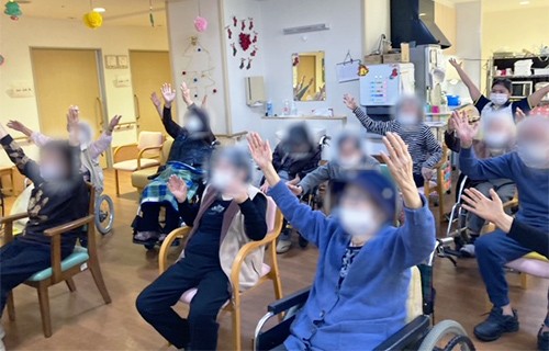 ショートステイといっても、ホームには看護師やホームスタッフがいて、同年代のお仲間も集まります。ご自宅にいると、なかなかこうした時間は持てません。