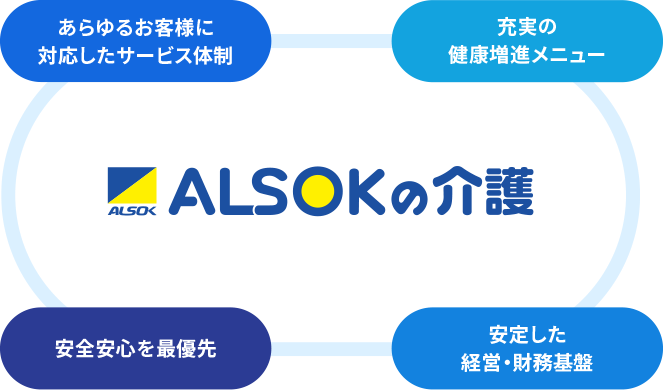 『ALSOKの介護』は、事業方針で描いた取組を通じて、ALSOKグループ全体の経営資源活用にも積極的に取り組み、お客様に選ばれる介護サービスを提供します。