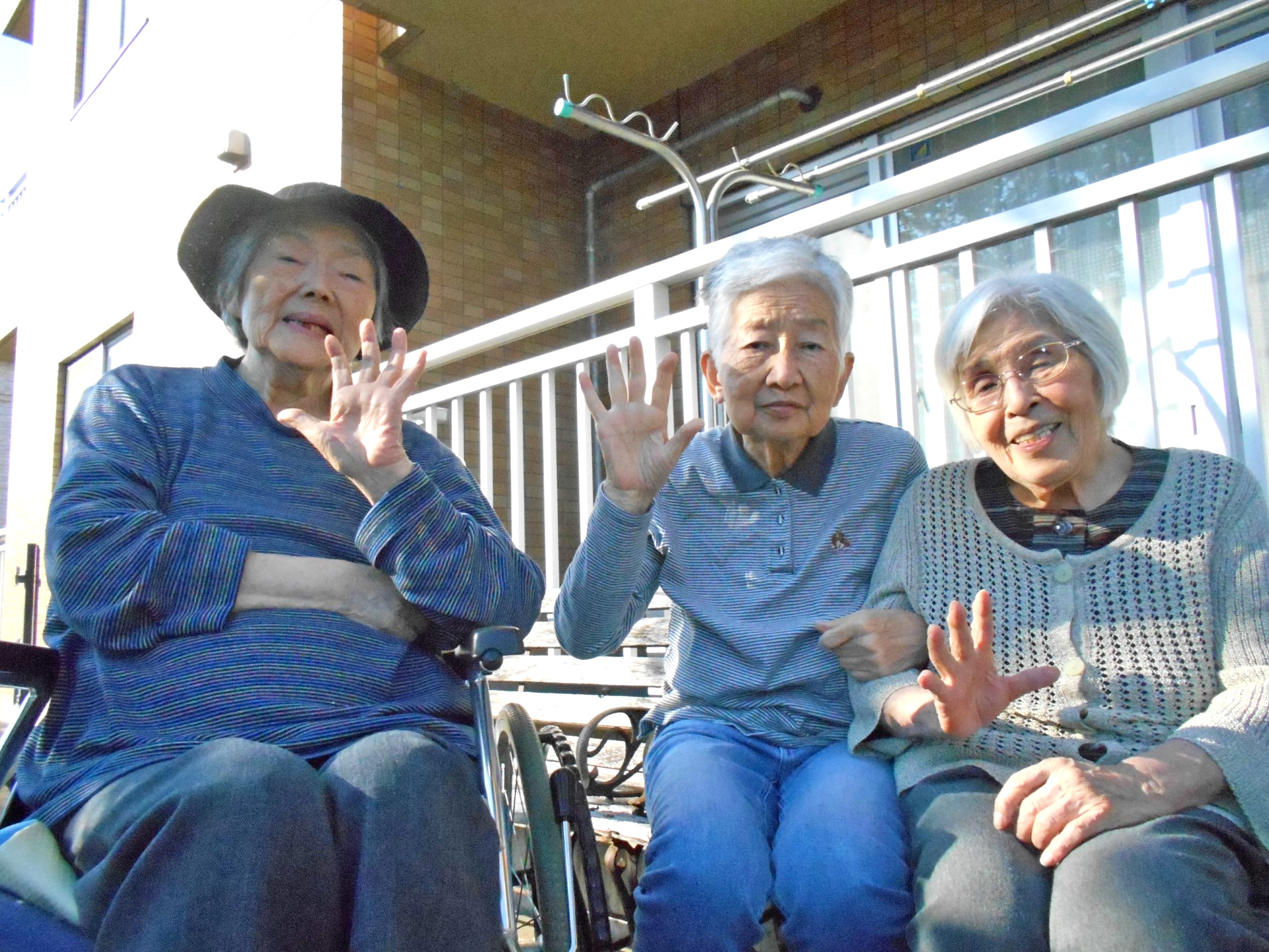 普段のご様子 中庭でおしゃべりを楽しみながら外気浴中です。