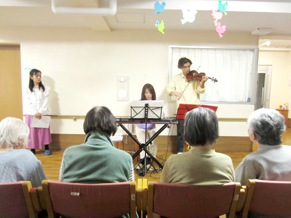 オレンジカフェ音楽会 今回のオレンジカフェでは音楽会をお送りしました。バイオリンとピアノの生演奏と歌を披露いただき、素敵な音色に皆様うっとりと聞き入っていました。
