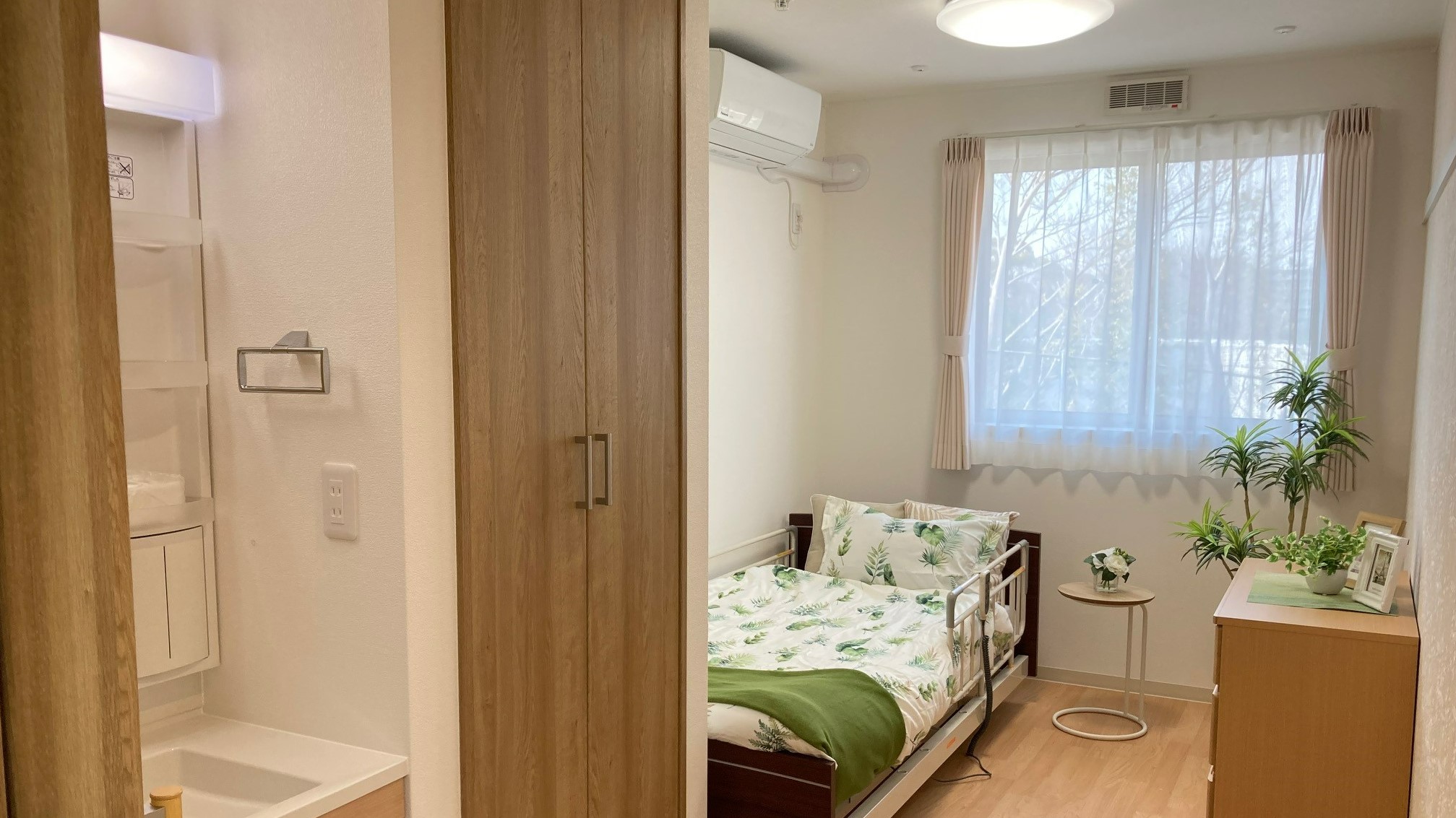 | 居室設備・サービス | 緊急通報装置, テレビ回線, エアコン, クローゼット, 照明器具, 電動介護ベッド, カーテン, 寝具, 車椅子対応洗面化粧台, チェスト |