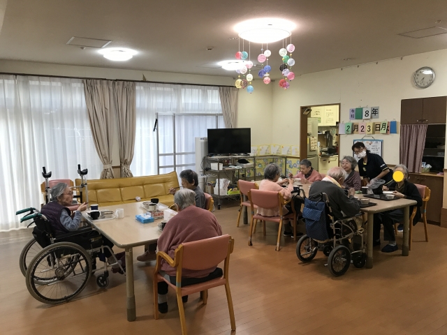 のんびり過ごすも良し、できる方にはスタッフがさりげなくサポートしながら食事の配膳やお掃除や洗濯物などの家事をお願いしています。
