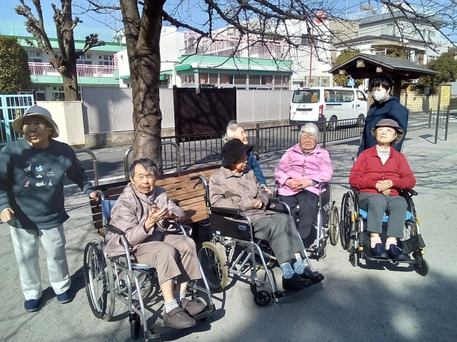 近所には公園や神社など多数あり、天気の良い日はケアスタッフと一緒に散歩に出掛けます。