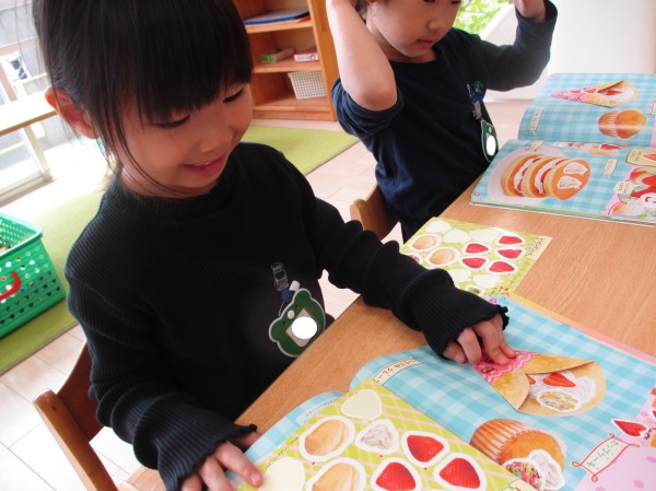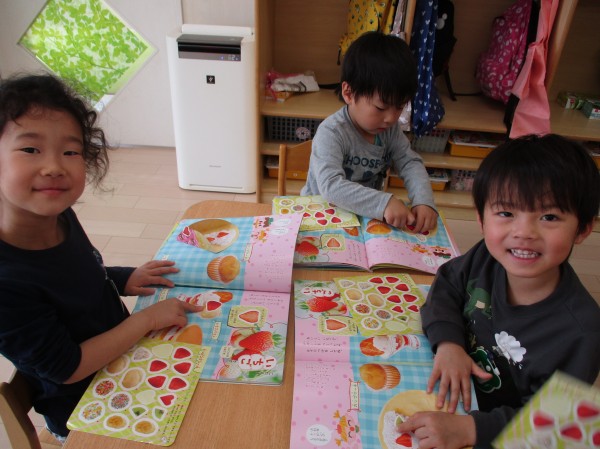 毎月楽しみにしている月刊誌が【なかよしメイト】と新しくなり、楽しくシール遊びをしました。